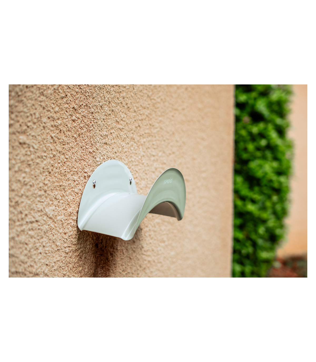 Sellette en métal conçue pour ranger le tuyau d'arrosage en hauteur pour un jardin rangé.